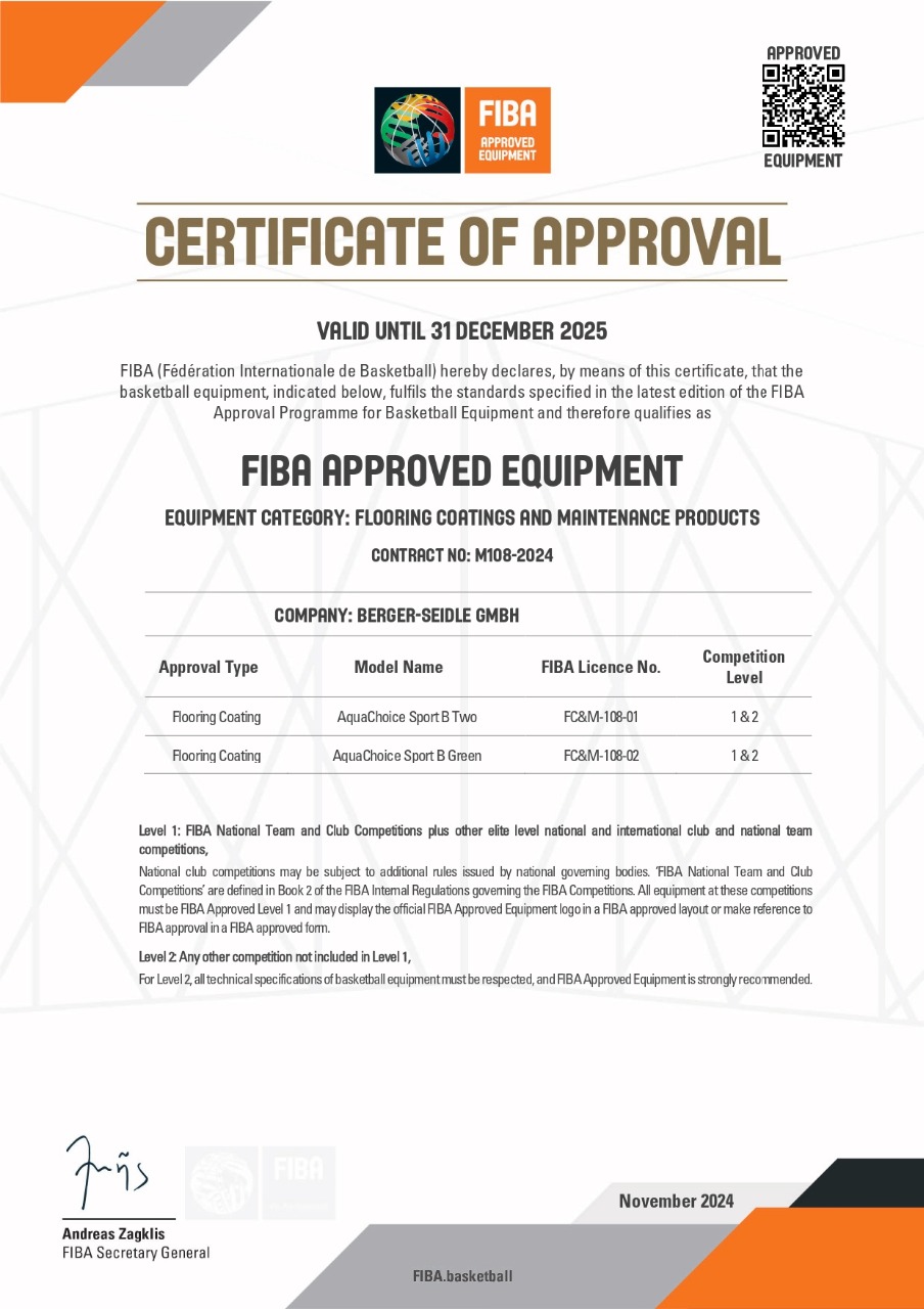 Berger AquaChoice SPORT B Two — це двокомпонентний водний поліуретановий лак, створений спеціально для спортивних дерев’яних підлог. Завдяки надзвичайно високій зносостійкості він використовується у залах баскетболу, волейболу, тренажерних залах, навчальних закладах та комерційних приміщеннях з екстремальними навантаженнями.